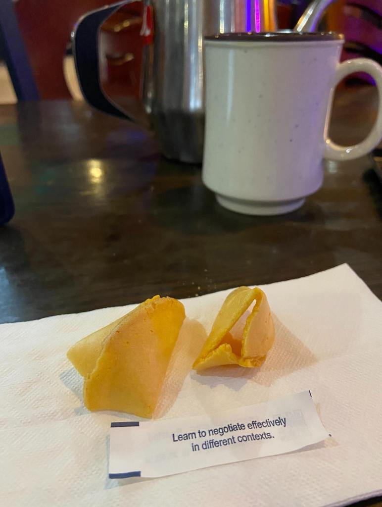 The restaurant looks empty in this photo, but there were a few other tables with people behind me as I took it…..I was about half way back and there was a long buffet to the right of where I was sitting.