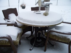 A few weeks ago, snow was predicted and we got nothing…..then last night, the prediction came through – we got a big dose of “wintery mix”! It snowed most of the late evening and night and then the sleet came on top of it! So — it wasn’t a HUGE amount of snow, but mixed with the sleet made things rather messy! Sanford typically does get more ice than snow, so it can be pretty disastrous – power outages, dangerous driving, etc… Thank goodness my power (and internet) hasn’t gone out! So, I’m just curled up in a nice warm house looking out at the pretty winter scenery!