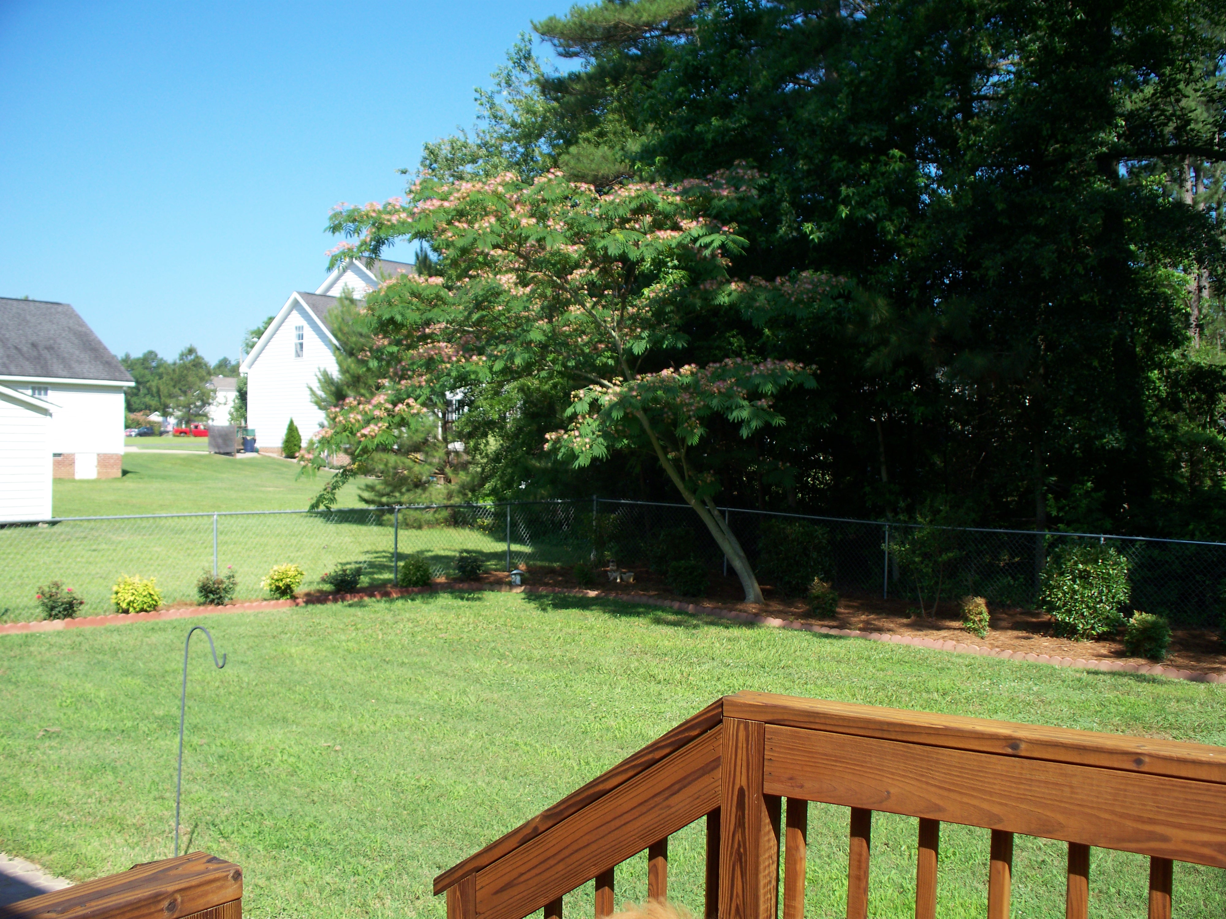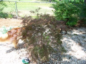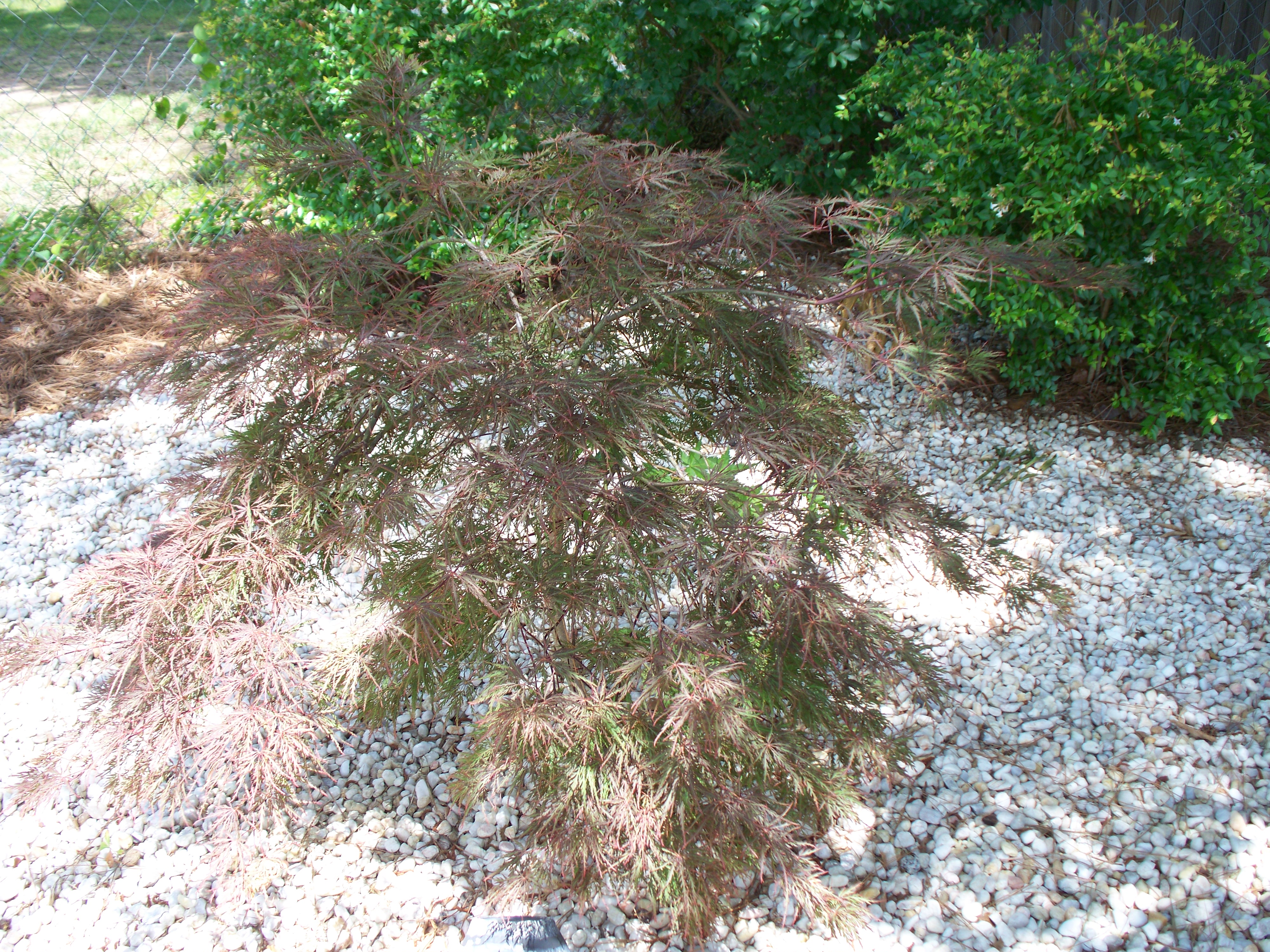 My special little Weeping Japanese Red Maple is really taking off and branching out. It was just a twig when the elves planted it a few years ago and in the last year or so, it has started to really get full and pretty! I adore it and it makes a perfect feature in the opposite corner of the lot that the mimosa is on.