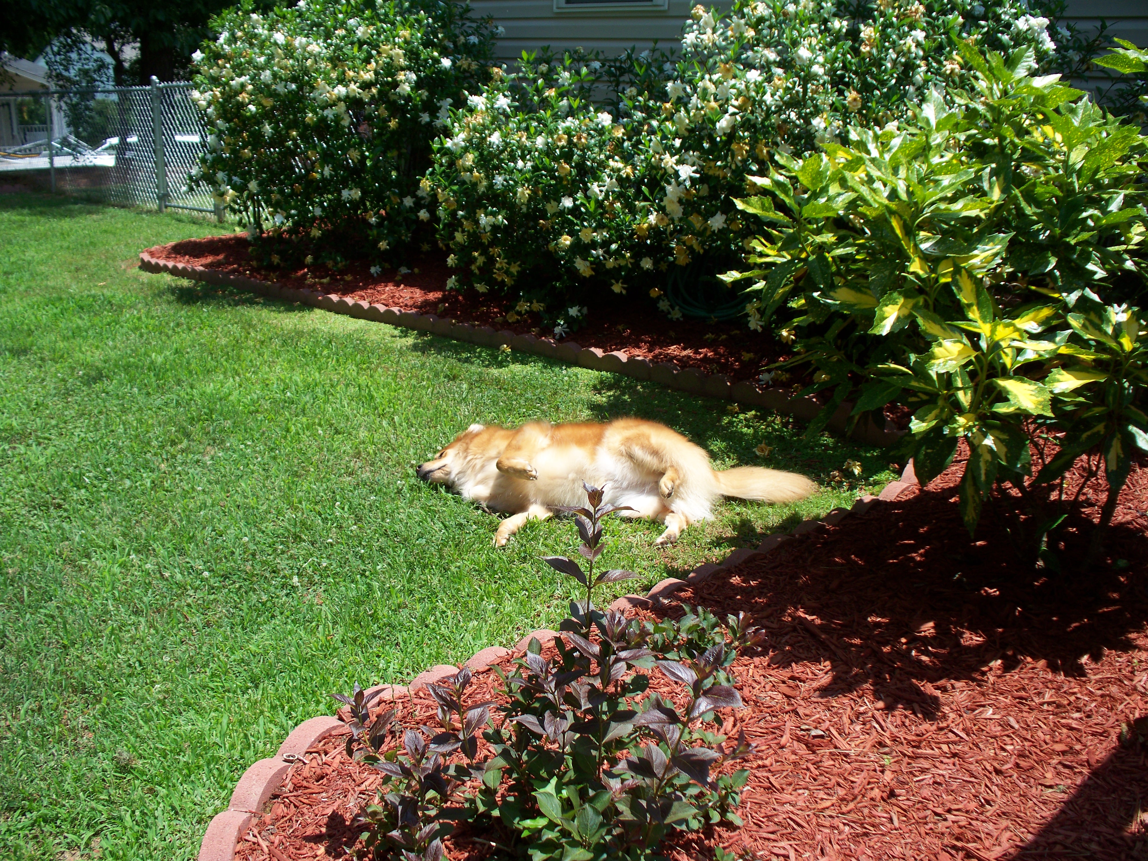 And Katie is loving the warm grass in front of the fragrant gardenias this morning, too!