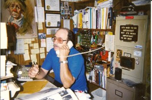The following picture makes me smile and it just screams “life is good”! You may not see it, but I do. It is of my Poppie – the main reason it makes me smile, but that isn’t all. To know why it screams “life is good”, you have to look really close and know more about the bigger context. First, he is on the phone doing what he loved to do – working on his locksmith business – in this case, it looks like he was placing a parts order. He is surrounded by drawers and racks of tools and little bitty pieces and parts on the shelves behind him – he LOVED stuff like that and it simply sent him into a tizzy of happiness just knowing he had everything he would ever need to fix anything that would ever need to be fixed and it was all within reach at all times! He is sitting in front of his computer – something else that brought him pure joy and a hobby of building computers for friends and family. Then, on the wall beside him there are photos of the grandchildren and others and above that, where you can’t see in this photo, is a photo of him with all his siblings with their mother on her birthday. The filing cabinet behind him has a clipping of his niece’s engagement announcement, a plaque that reads “It’s nice to be important, but it’s more important to be nice” – something that describes him to a “T”, and the name “Marilyn” – his wife, my mother! So, yes – this photo makes me smile every time I come across it – it looks like a busy mess, but it is a perfect image of who he was and what meant the world to him. Of course there was a lot more that he found joy in and every photo of him makes me smile, but this one says so much all in one brief snapshot in time.