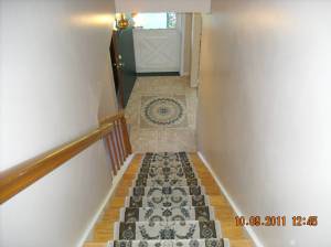 For my four-legged babies – the girls, the stairs are a playground! Katie and Amy wrestle on their way up and down the stairs – at first I worried they would get tangled up and tumble down the stairs and get hurt, but they keep their balance and continue their playful fun. Megan was apprehensive about the stairs, at first. The night we arrived in our new home, she was the first to go upstairs to check out the rest of the house – she’s my nosy one! But, after she ran all over every room up there, I heard her whimpering. I looked up the stairs and she was standing at the top with most of her body around the corner in the bedroom looking down from a safe distance. Her head was hanging down and she was whining! I called to her, but she wouldn’t come down. I went up to see if she’d come down with me, but no dice – she was clearly petrified to go down the stairs. In the mean time, Katie and Amy had gone up and down at least a dozen times. I tried to get her to go with me while I scooched down the stairs beside her – as long as my hand was on her back and I was right beside her, she was fine. We got to the bottom and she ran off to explore more of her new home. She followed the other girls back up and was, again, scared to death to come back down. So, I sat at the top and had her sit beside me and watch the other two go up and down. Finally, she followed them down and has been fine ever since – she just had to be taught how to go down!