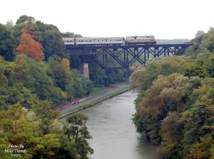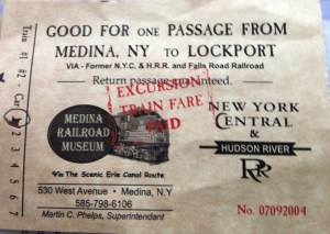 A couple of weeks ago, I took advantage of an opportunity to focus on enjoying the beauty of October in WNY. It was a gorgeous 70 degree October Sunday – perfect for a scenic train ride. The next town over from us is Medina and Medina has an impressive Railroad Museum full of railroad and other local memorabilia. The museum also has a working train of vintage 1947 Budd passenger coaches and offers excursions with various themes – they do a Thomas The Train ride, a Polar Express ride, Winery Tours, and other seasonal scenic tours – including a Foliage Tour, which is the one I took on Sunday, October 7th. The ride goes from Medina to Lockport along the historic Erie Barge Canal Corridor (note to self: I should write a post about the canal one day – what an amazing piece of history for our state that runs right through our town…….OK, that’s enough digressing) and takes two hours round trip.