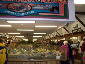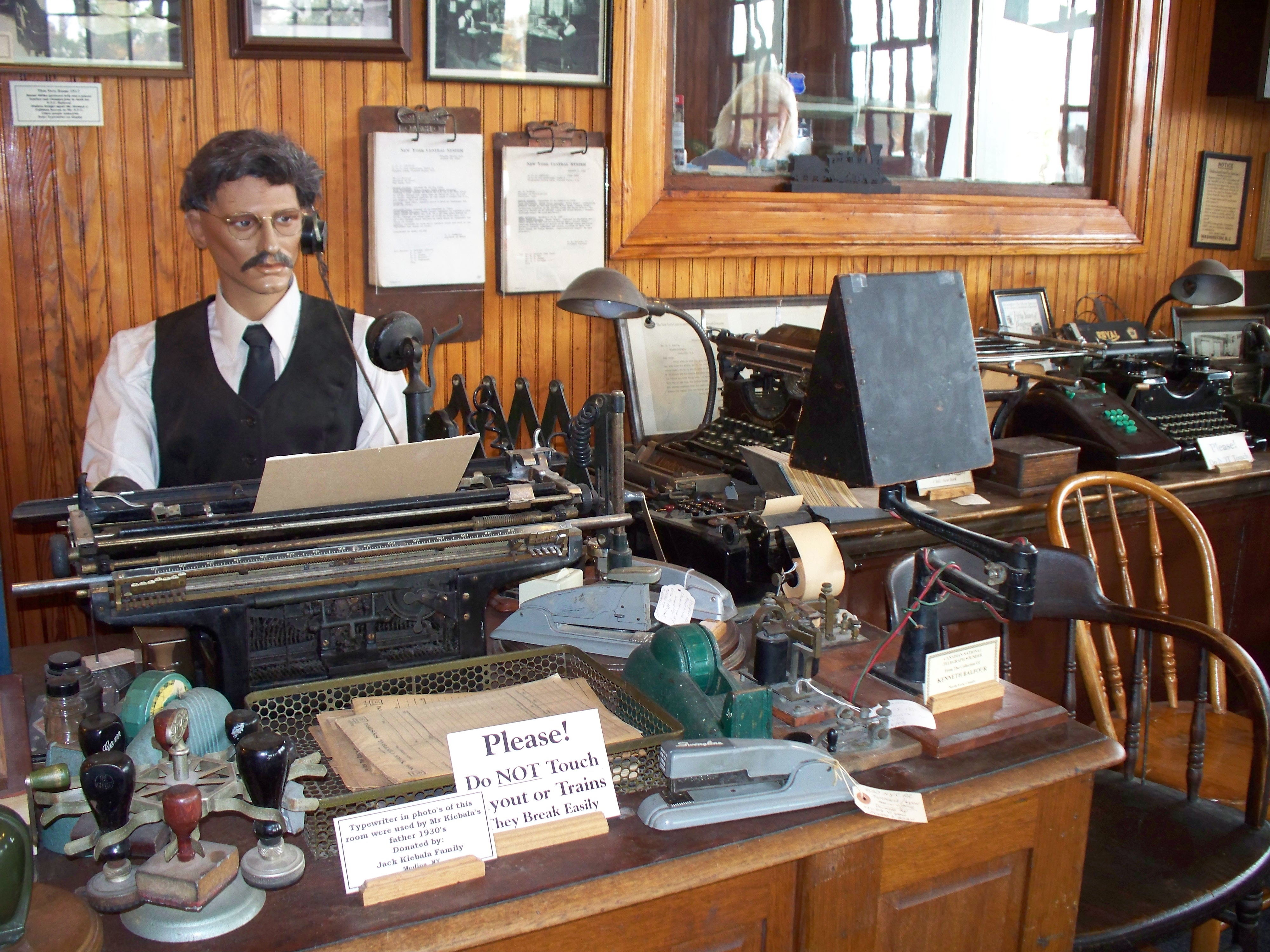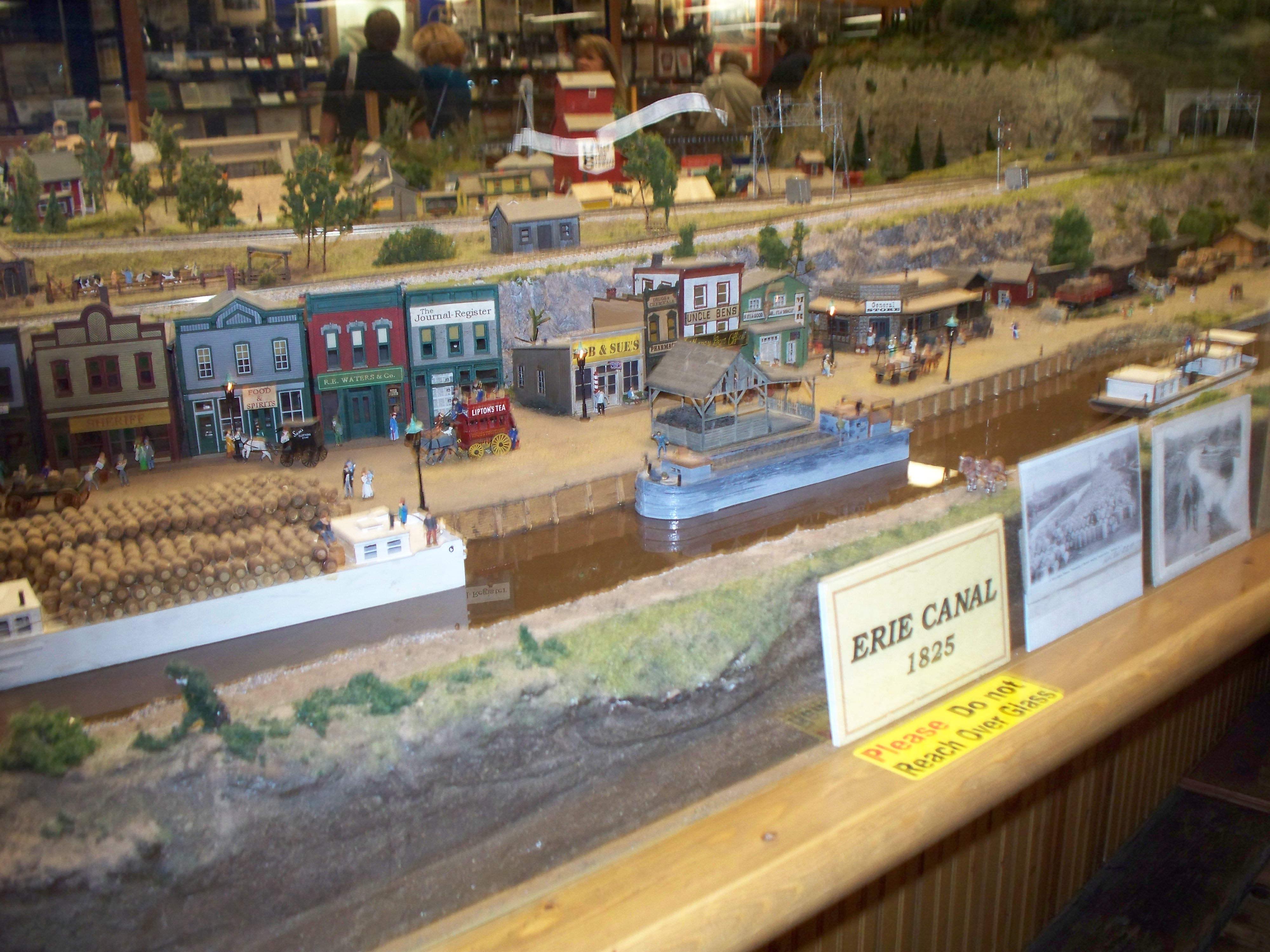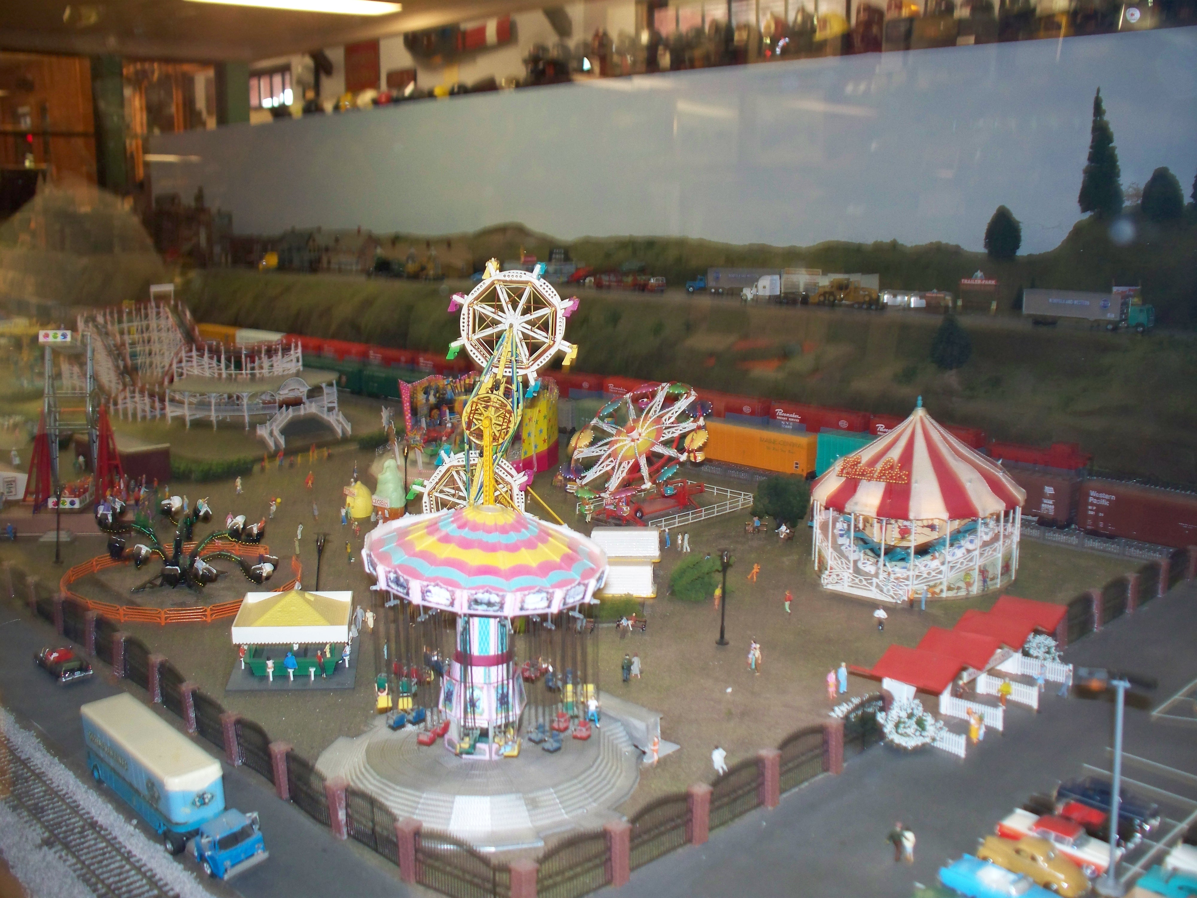 Let’s start with photos of the inside of the Railroad Museum. When you first enter the museum, you come on to a display of old telegraph, teletype, and typewriter equipment – very cool. The majority of the museum houses the largest HO scale train display in NY at approximately 200 feet long and 14 feet wide. The track winds around through various historical and geographical points of interest throughout Orleans County – fascinating – it shows a thriving area of familiar vintage and current sites and even a working carnival.
