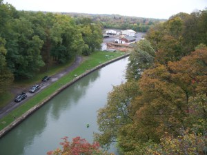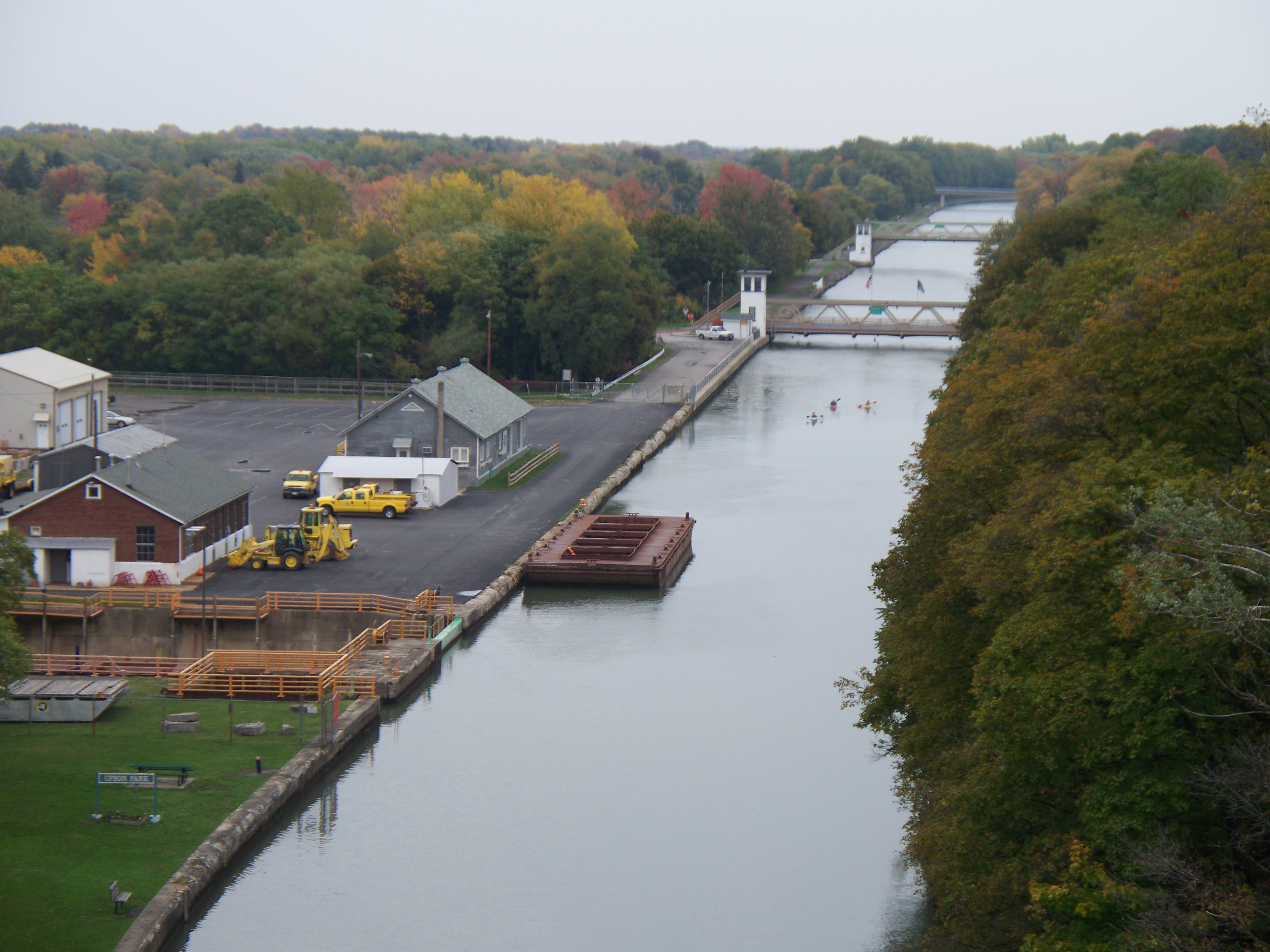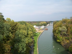 One of the best parts of the trip was going over the “upside down bridge” in Lockport. This is a VERY high bridge just big enough for the train tracks that goes over the canal near the locks. The first photo is actually taken from the Medina Railroad Museum web page (no way I could get a shot of the bridge from the train). The other photos following it (and the one just above this) are what I could see from the train.