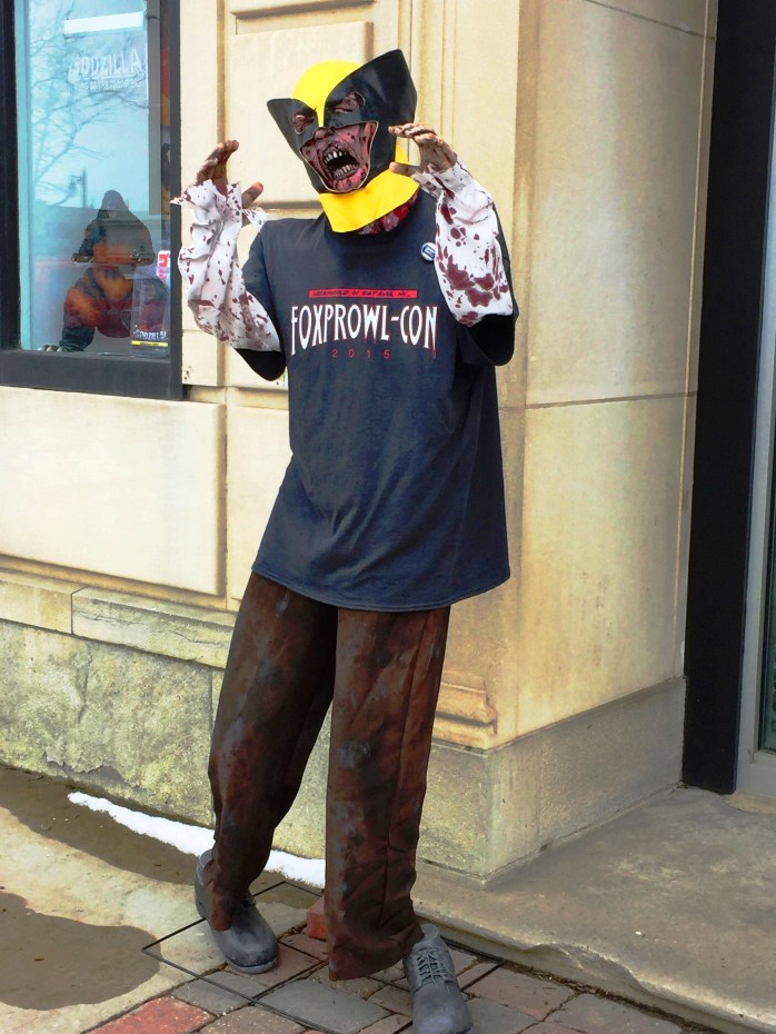 I was driving down Main St in Batavia this afternoon and THIS caught my eye outside a toy and comic book shop…..and I almost ran into the car in front of me!!!