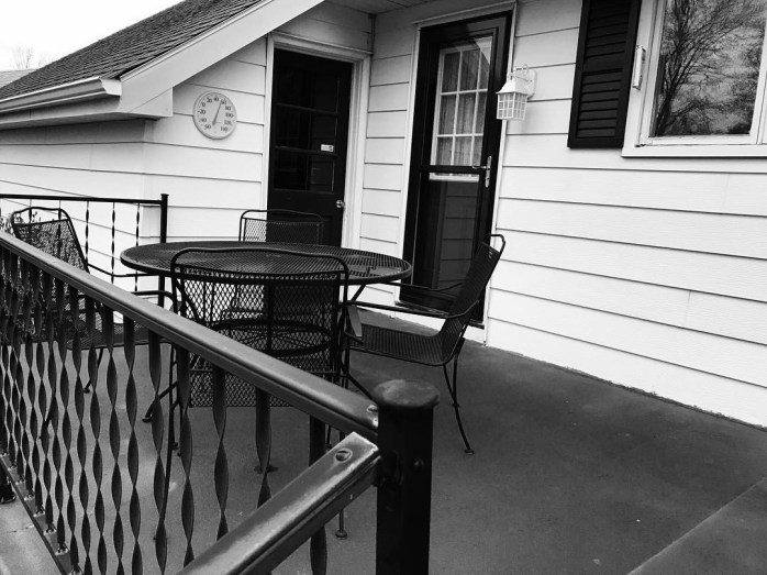 Actually, this would have met the topic even if I hadn’t turned it into a B&W photo – the house is white and the table and railings are black! HAHA!!!