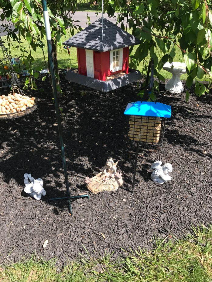 At the right side end of the Fairy Village is the Bird Buffet with angels beneath the feeders