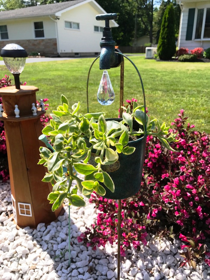 Another item I really love…..this is one of two I have on either side of the lighthouse in the center of my front island garden…..they were meant to go in the Fairy Village, but they were kind of “lost” under the tree cause they are tall and end just about at the branches…..so, I decided to put them here where they will get more sun and be more easily seen and enjoyed!