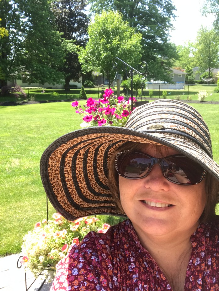 Today was the start of the Albion Strawberry Festival – continues tomorrow after the big parade in the morning. So, you can bet I’ll be posting some photos after the weekend is over to show off our big annual event! I spent some time wandering around the craft vendors area with friends this morning and bought myself a new hat…..love hats…..didn’t really need another one, but couldn’t resist!!! But, before that, I worked on my Fairy Village…..I started it about a week ago by just setting out some fairy and gnome related things I had, but I didn’t like how it looked – too crowded and hap-hazard! So, I got some things to add to it and planned it out better and re-did it this morning…..MUCH BETTER!!! The weather was amazing for festival-ing, gardening, and relaxing on the patio…..when I wasn’t on the go!