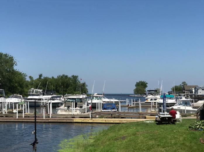 I went to lunch at Boone and Crockett’s at Point Breeze with a friend, today, for the first time this season. I love sitting on their deck while I eat and enjoy this incredible view of Oak Orchard River and Lake Ontario.