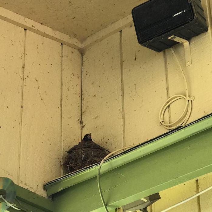 While we had lunch, I noticed this robin in her nest in the corner just above our table! I thought it was amazing how calm she was as she just sat there on her eggs with the speaker playing music just above her and all the noise and movement of the lunch crowd! Very cool, in deed!