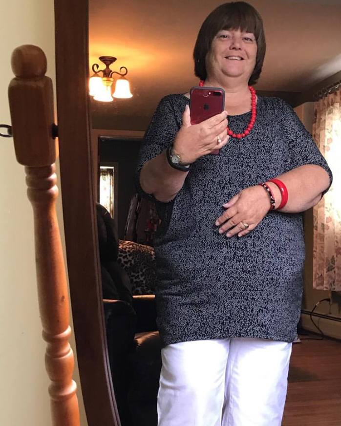 LuLaRoe “Irma” top with white capris and a splash of red!