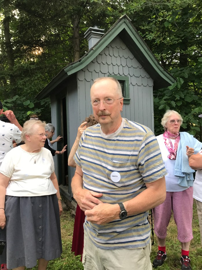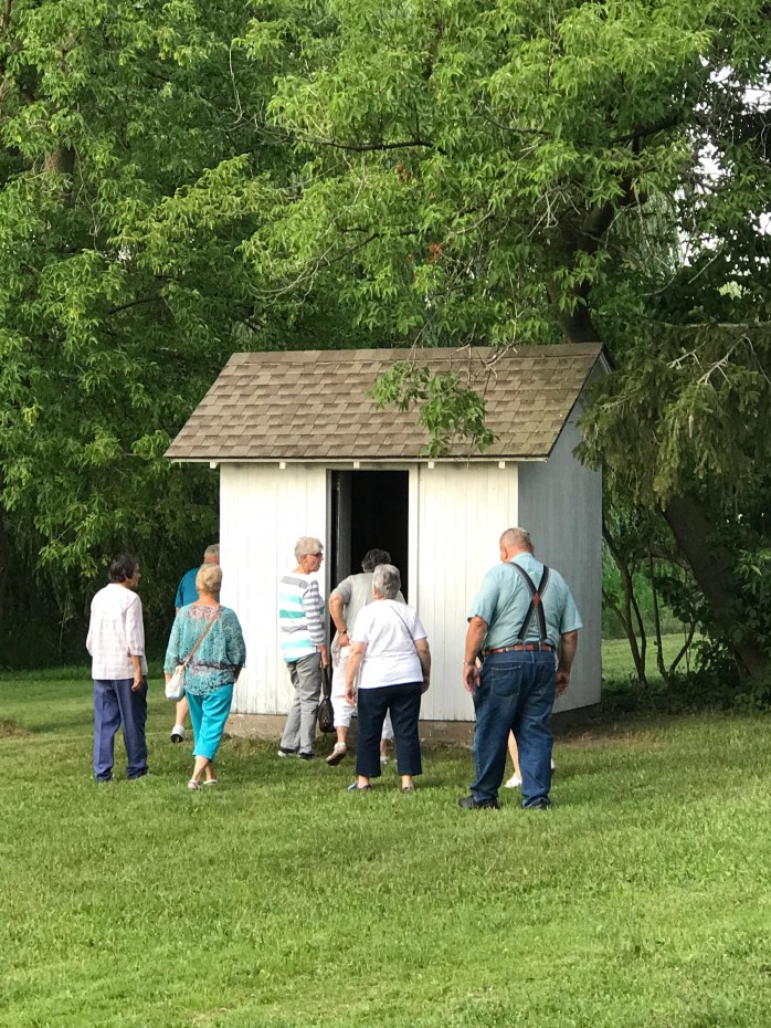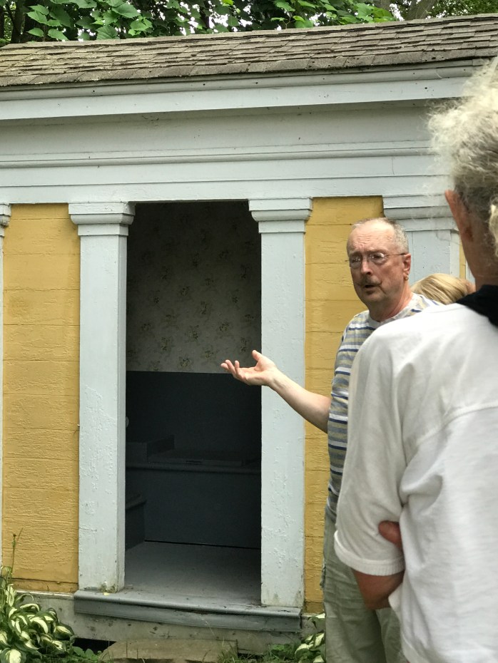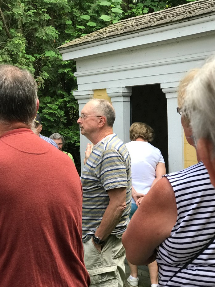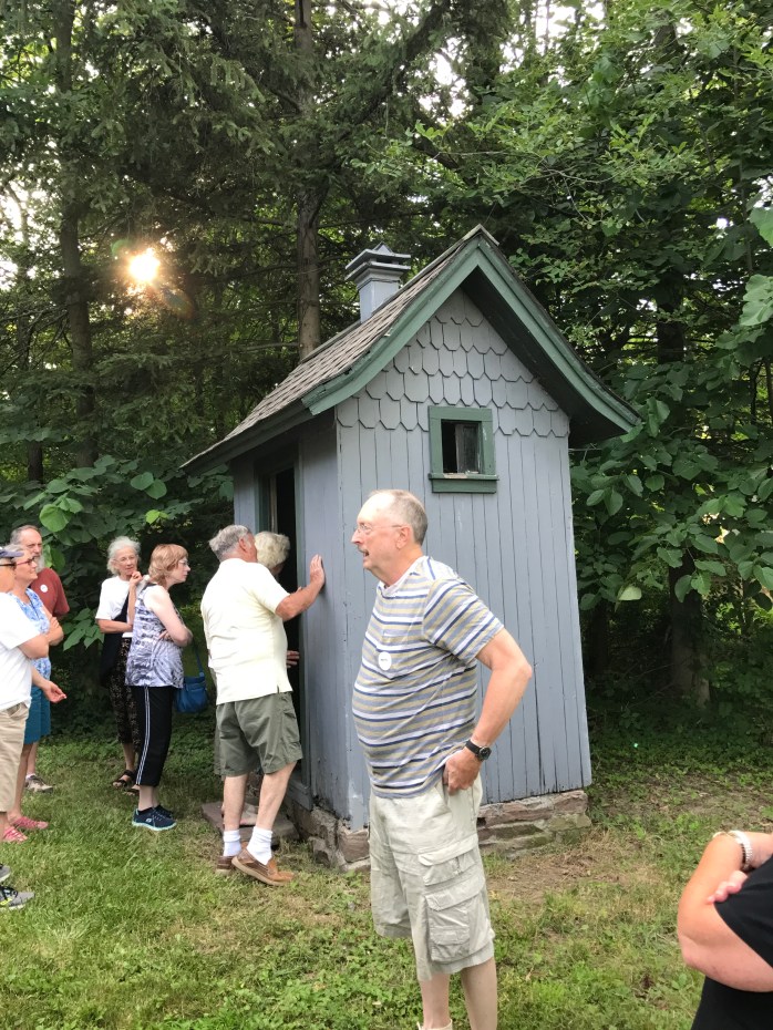 Yes, I spent two hours this evening on a tour hosted by the Cobblestone Society Museum and it was all about privies, outhouses, potties, loos, whatever you want to call them……and it was sooooo much fun! Of course, any tour that is led by Bill Lattin – former Cobblestone Society Director and County Historian – is guaranteed to be fun! And…..it was a GREAT turnout! We had quite a good size crowd of privy enthusiasts taking the tour!!! 😀
