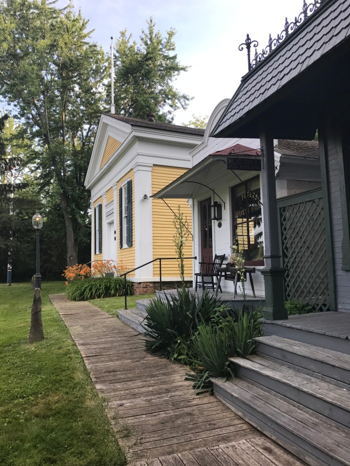 This school is part of the Cobblestone Society Museum Complex – note the two doors – the one on the right was for girls and the one on the left was for boys! They sat intermingled per class once inside, but they were to enter through their own door with separate coat rooms just inside so they would have privacy removing their coats and such!