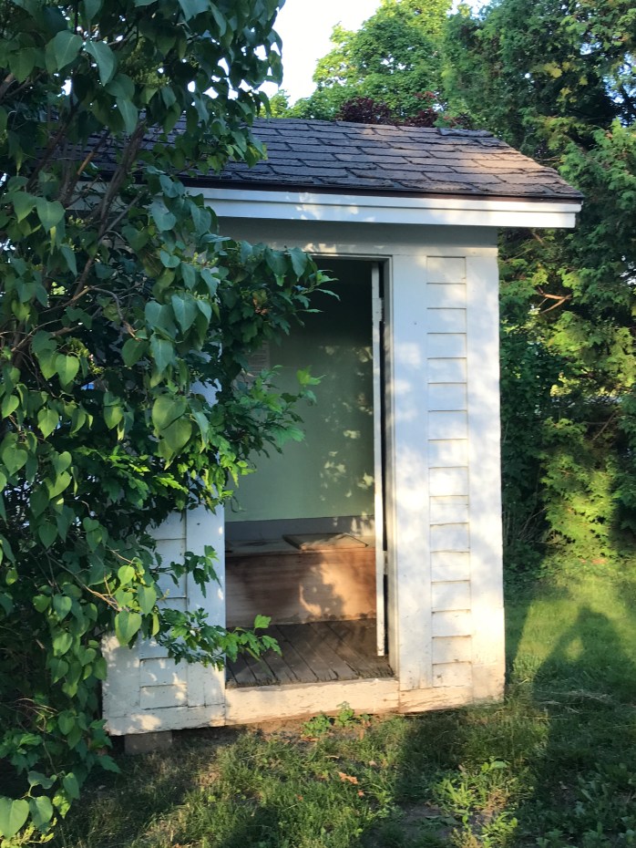 This one is located behind the church and I believe Bill said it is the oldest of all the outhouses they have on the Complex grounds