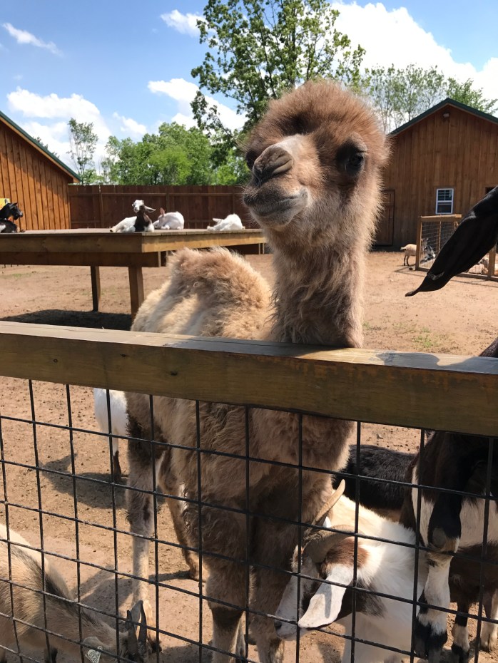 There was another platform where you could get up close with the camels, too. The baby camel in the other enclosure was super sweet, but so were these adult camels……so gentle and really loved the attention!