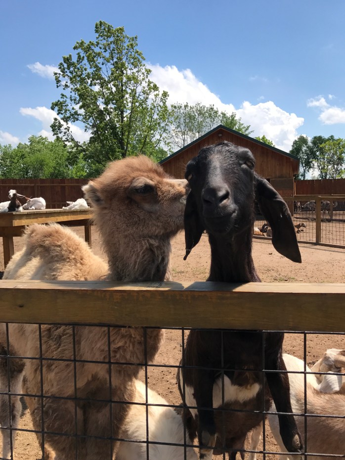 This black goat was a bully – he would crowd his way in to steal the food out of people’s hands that were trying to feed other animals…..but, my sweet baby camel wasn’t going to take it…..she bit onto the side of his neck and pushed him out of the way! hahaha Atta-girl!!!