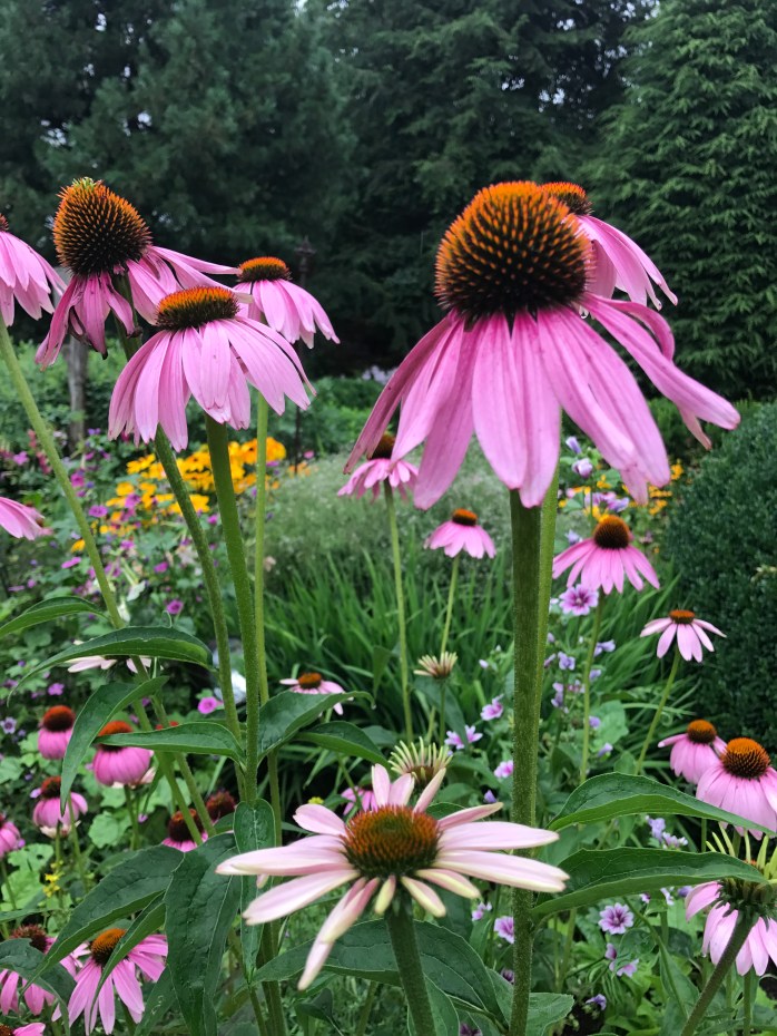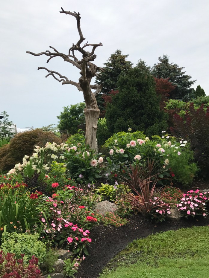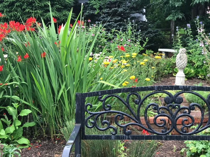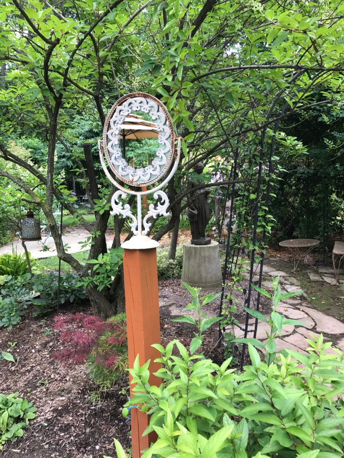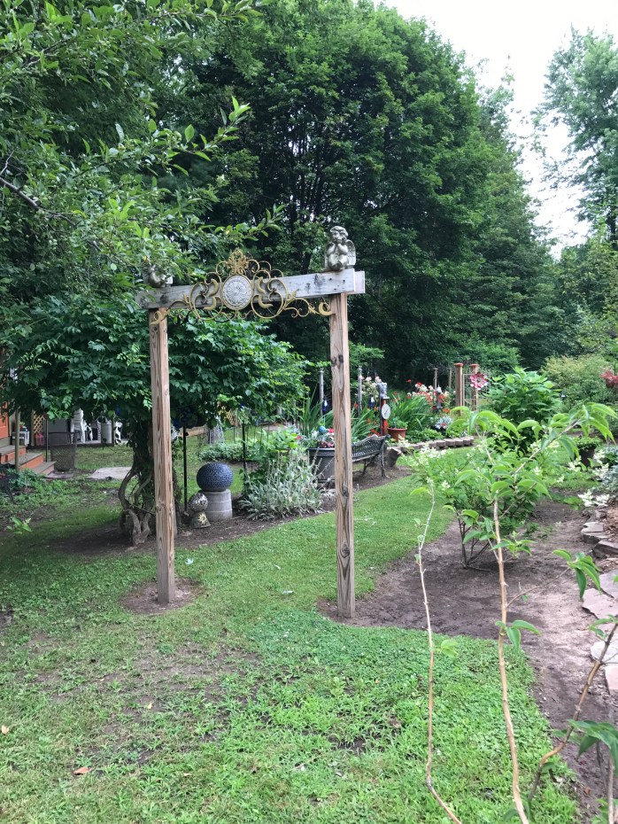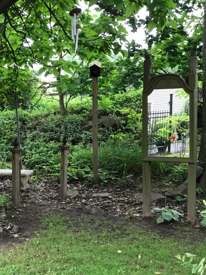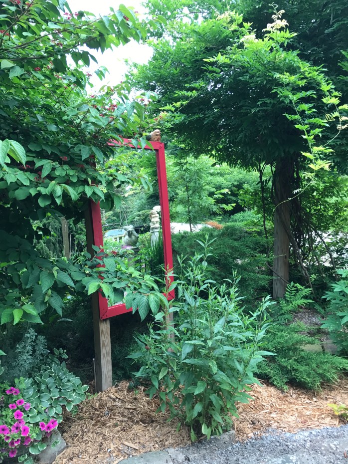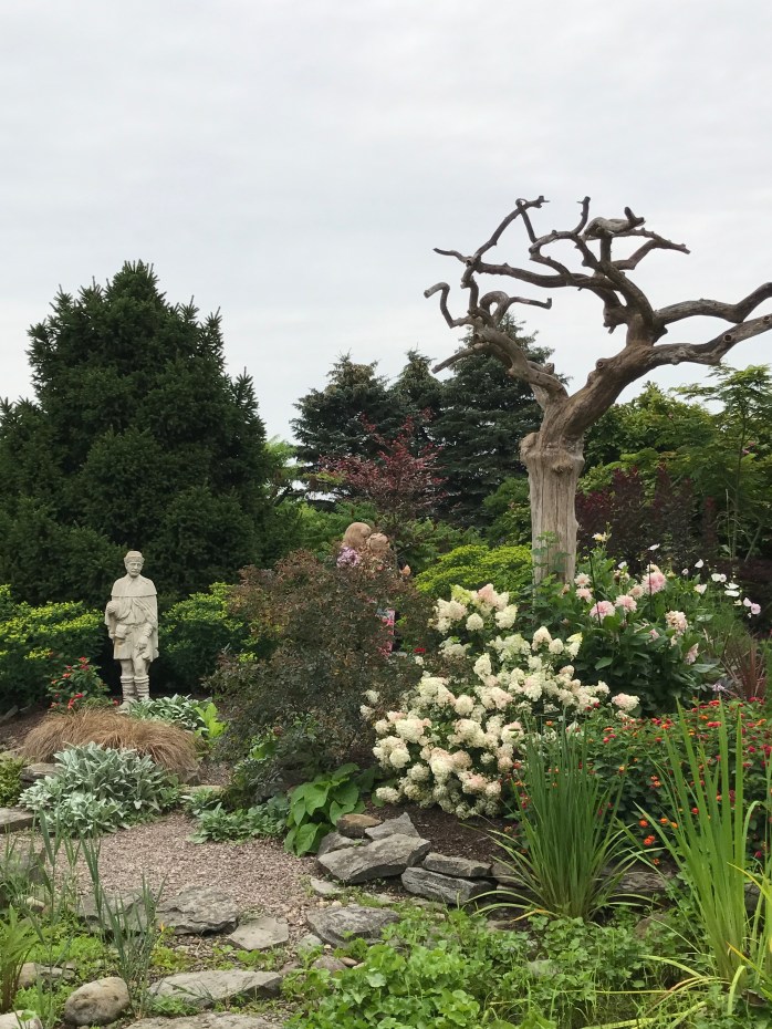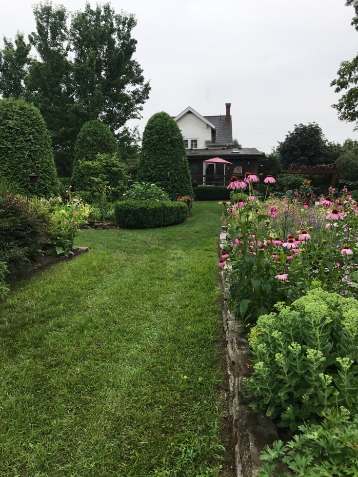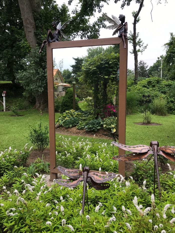 Two weeks in a row I was treated to the splendor of the Riley home! The first time was a Garden Party (scroll down to find the blog post about it) hosted by the Orleans County Cornell Cooperative Extension Master Gardeners and I was in such awe I completely forgot to take more than a handful of photos….and none of the most amazing parts! I didn’t make that mistake, again! Also – the difference this time was that it was a guided tour by Jeanette Riley, who explained the meaning of all the different colors, items, themes, and focal areas, as well as what some of the less common plants and trees are and where she got them. Her gardens are a true family affair and everything in them ties somehow to the family and what is close to their hearts. I especially love the use of mirrors in the gardens — just amazing!