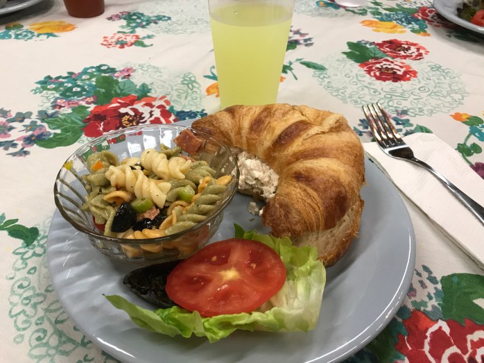 We had a few choices for lunch – I had the chicken salad on a croissant with pasta salad and lemon aid – VERY GOOD!!!