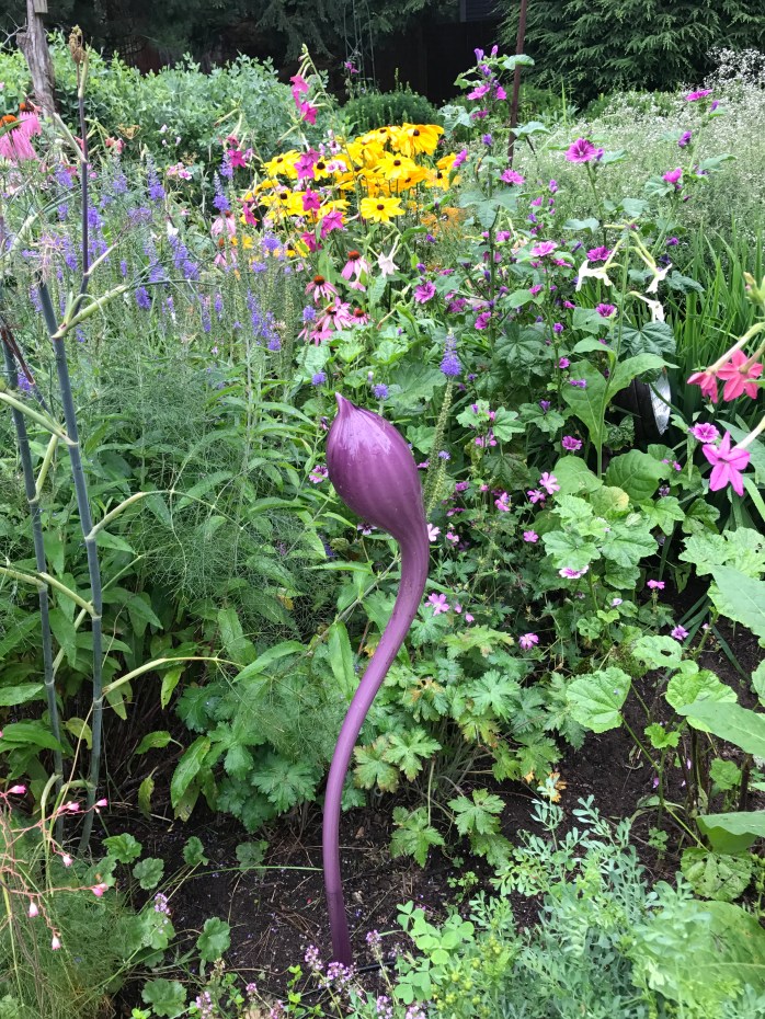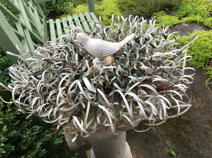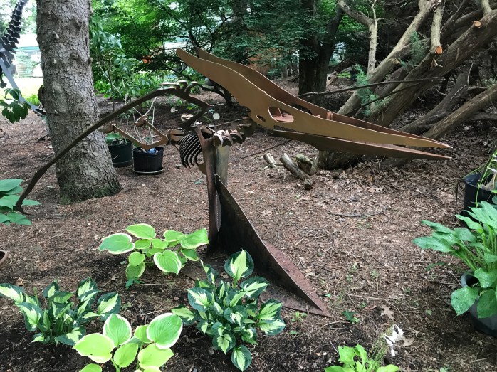 This is a beating heart sculpture made by a metal sculptor from Rochester — it slowly spins with the breeze! Lovely!