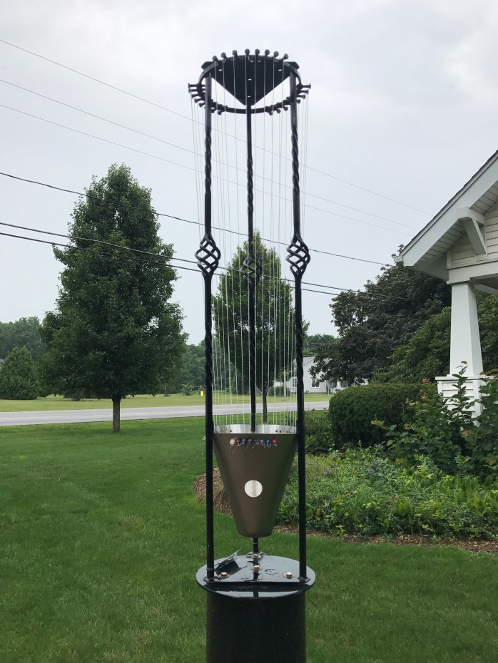 This is a wind harp — I have never seen one before — the wind flows through the strings and makes the most amazing music!!! I’m obsessed with it — I’m going to have to find one for my yard!