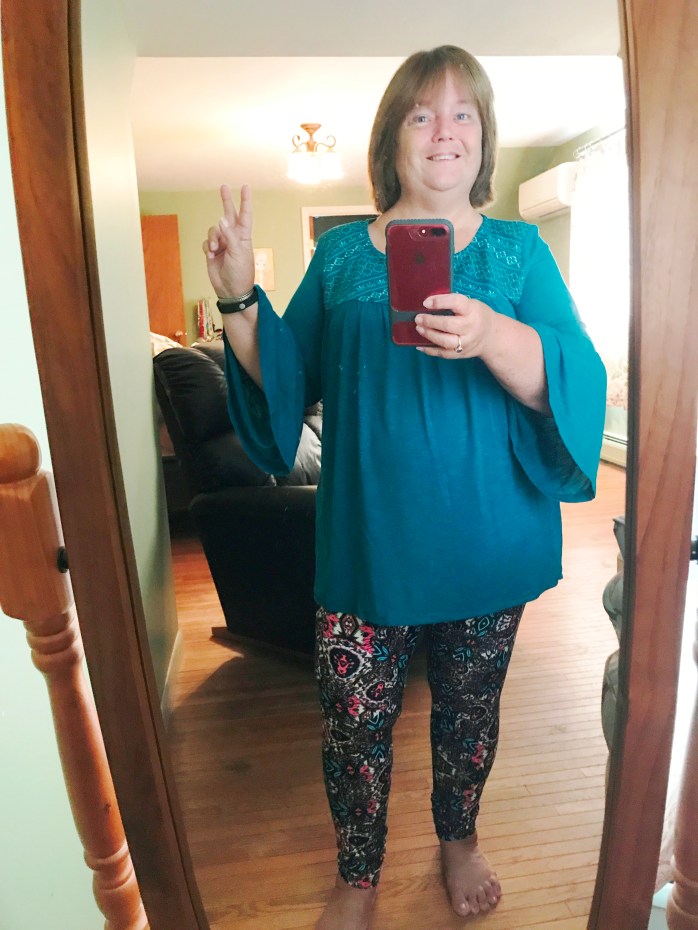 “Old Hippy”……LLR Leggings with a bell sleeved smock top from Walmart! 😀