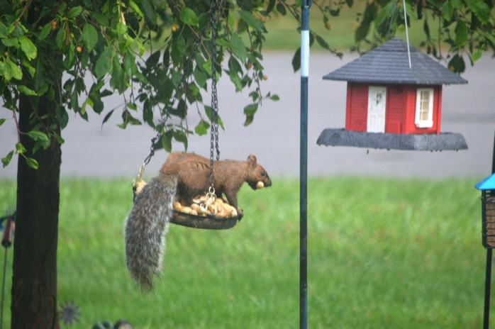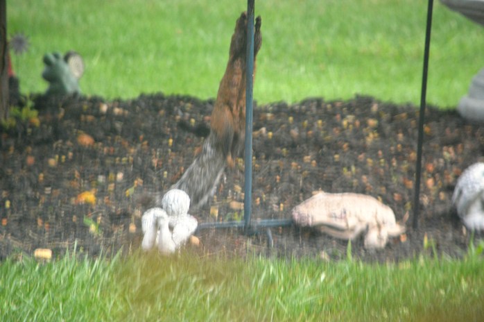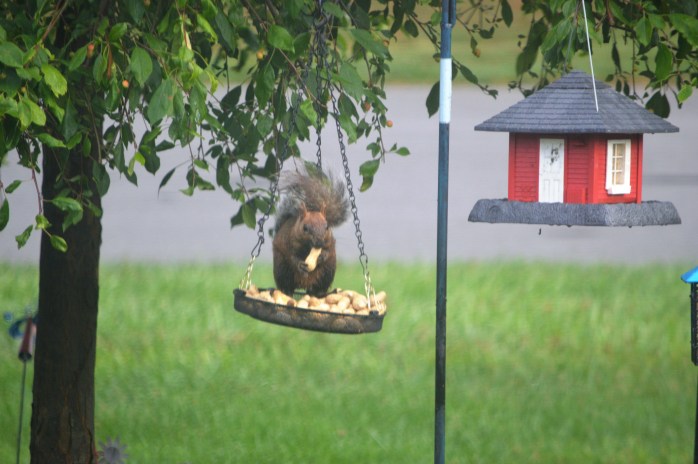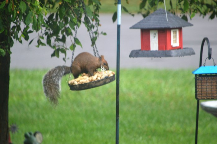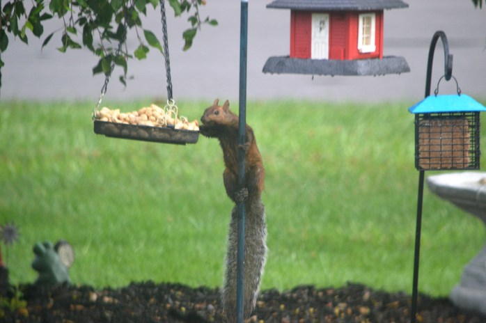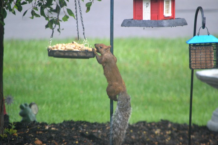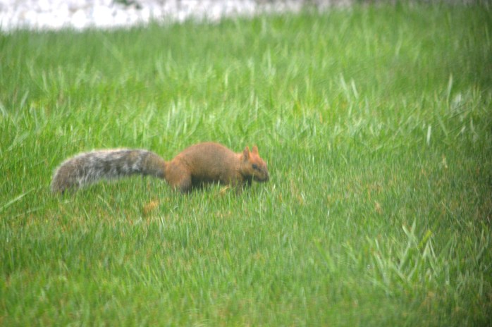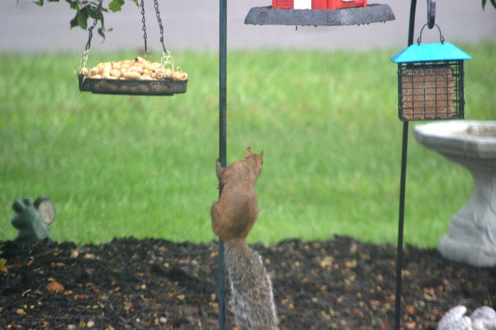 First I’ve seen this little guy, but my neighbor across the street has seen him in her feeders for a while. He is a really pretty color…..sorta like a red squirrel and a gray squirrel hooked up and had this love child!!! hahaha