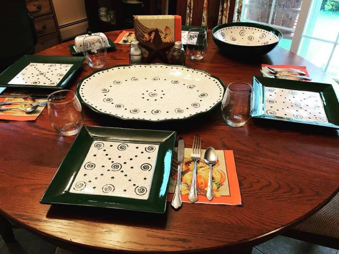 First major dinner party using the set of dishes I am making in ceramics! So proud! Still building the set!