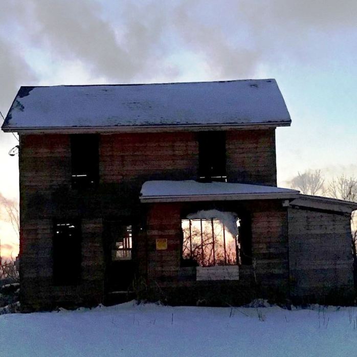 I drove by last night at dusk and got a whole different perspective. That soul / spirit seemed to be more alive…..the setting sun shining through the open windows, the snow and wind declaring how cold and open it really, truly is……the darkness setting in, but yet, still providing enough light through the openness to be able to imagine the memories…..and to allow us to wonder…….