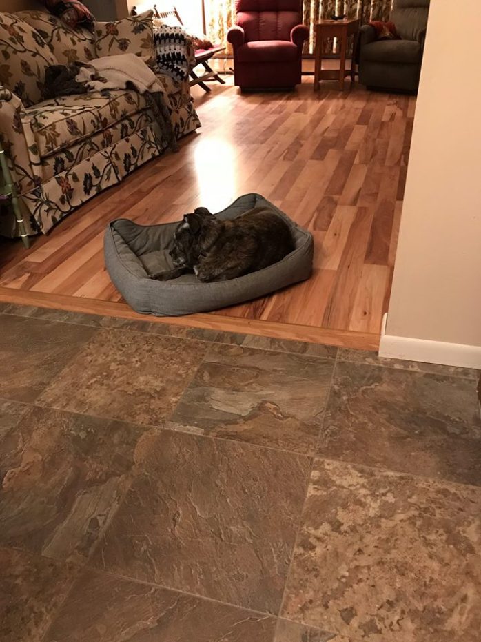 And, finally……see that little area in front of the wall on the right hand side of the photo? Well, that’s where Megan’s bed is supposed to be and has been for quite some time. The other night, Megan decided she wanted it moved……she dragged it away from the wall, then pushed it to where you see it here, then walked around it several times and made small adjustments to the position, then gave it a few nose butts to secure the location and curled up and got comfortable! Within minutes of taking this photo, she was snoring like a freight train – I guess moving your furniture around takes a lot out of you!!! LOL