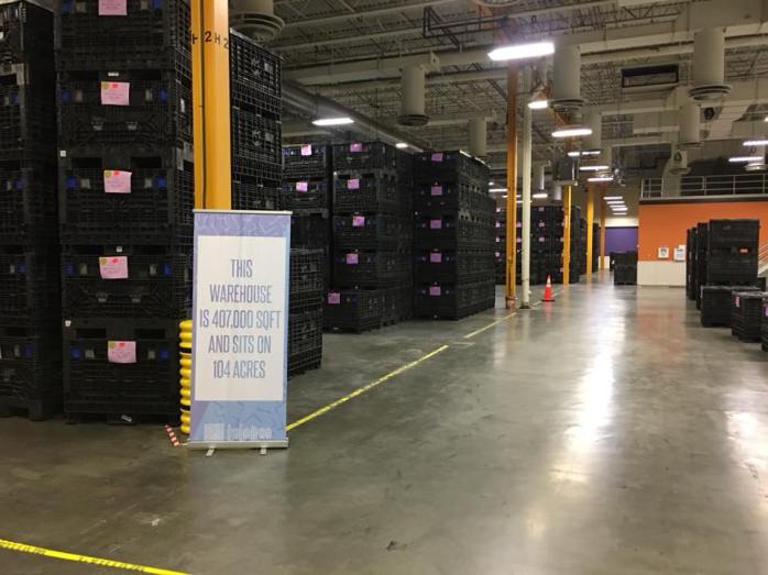 THEN — then we were all done shopping and checked out, we went to a refreshments tent to wait for the next tour of the actual warehouse! WOW — that was so awesome!!! What a thrill…..that place is HUGE!!! And, very efficient — the people were so friendly and happy to see us and the operation was extremely impressive – the technology was amazing!!!