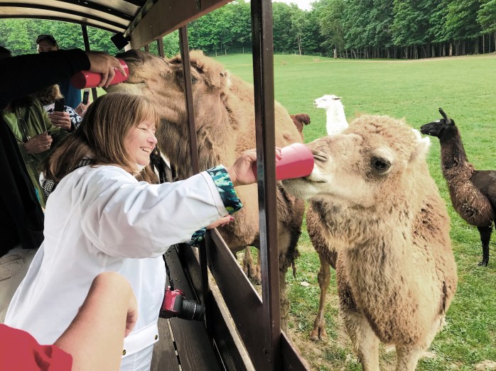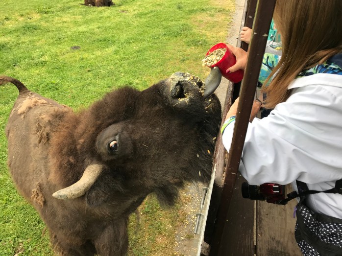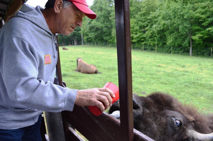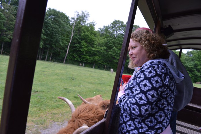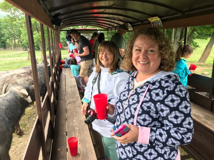 I went to the most amazing animal park with some friends that were visiting from NC this week!!! Hidden Valley Animal Adventure is located in Varysburg, NY – near Attica – and is a wonderful place to spend a few hours! You take a trolley ride through the park and so many super cool animals come right up to the trolley when it stops to beg for treats…..and they get lots of them!!! ❤ There is also a small animal area where you can pet and feed some and others you can see through a barrier. I very much enjoyed ALL the animals we saw, but I particularly loved the camels – what wonderful, gentle giants they are!!! And…..I was amazed that I went all over the mid-west hoping to see Buffalo / Bison up close, but only saw them off in the distance and here right in my own back yard (so to speak), I was not only able to get up close to some, but I was able to FEED them!!! WOW!!!