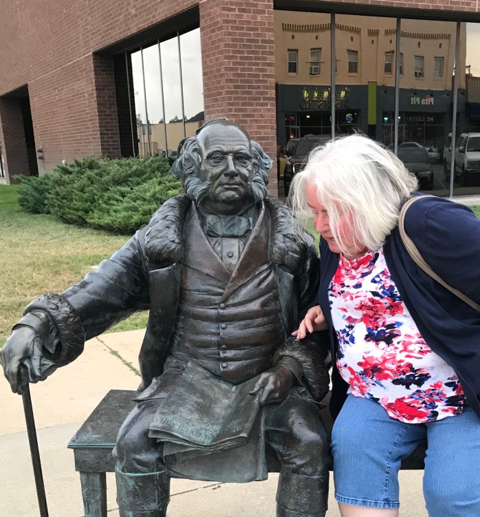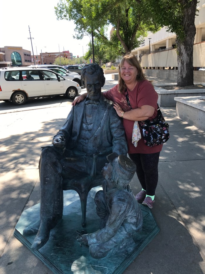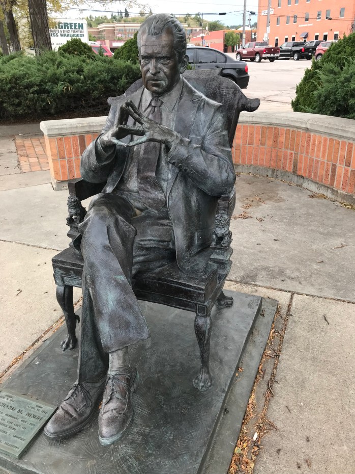 After we got settled in at our hotel – The Rushmore in downtown Rapid City – we decided to explore the historic downtown area and have some dinner. I didn’t get to visit downtown Rapid City the last time I was in SD – even though we stayed at a campground right on the edge of Rapid City, so this was all new to me. And, what a wonderful downtown area it was! They have branded their town “City of the Presidents” because of Mt. Rushmore. There are wonderful bronze statues on every corner of the two main streets in downtown Rapid City – every President is represented up to Bill Clinton – Obama is in the works, but not positioned, yet! The best part is they look so “real” – they were all done by different artists and they chose to sculpt them in ways to show off their personality or something significant in their presidency or personal life. Here are just a few of my favorites – we did 1/2 that first night and the other 1/2 after we got back to the hotel after sight seeing the second day.