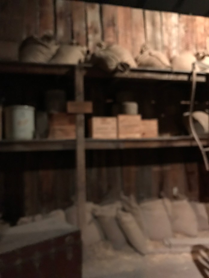We went inside and were greeted by volunteers dressed in period clothing. We were first brought into a room where a gentleman explained the use of the wagons – how they loaded them with all their belongings, which left no room for riders – everyone walked, except the severely ill and dead. It was very expensive to join a wagon train, so it was typically the wealthy or upper middle class who were able to go. They had to purchase a wagon and then an appropriate team of animals to pull the wagon – usually oxen because they were the strongest and cheapest to purchase, as well as horses to be used if someone needed to venture off for whatever reason. It was a LONG and difficult journey and not everyone made it. Those who died along the way were put in the wagons so they wouldn’t be slowed down – they had to make it so many miles every day in order to stay on schedule – and they were buried at the next stop.
