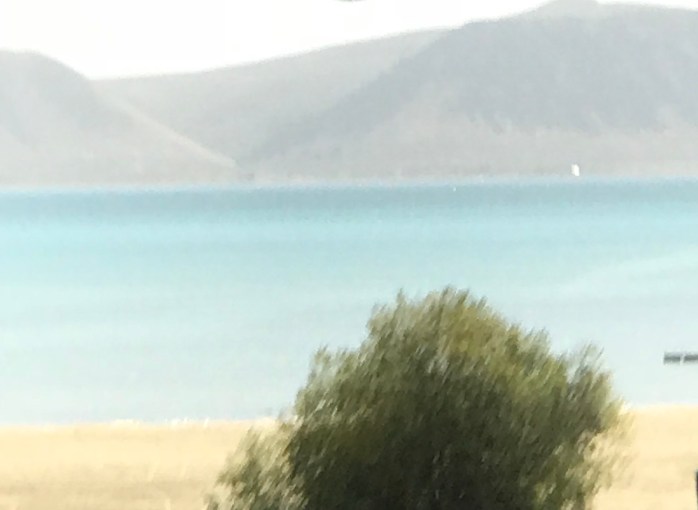 Hard to see the true color in this photo thru the window glass, but this lake has the most amazing aqua water — said to be bluer than the Caribbean!