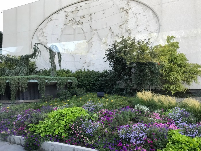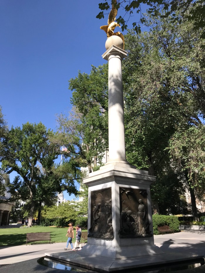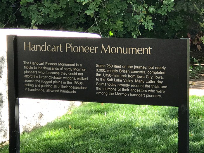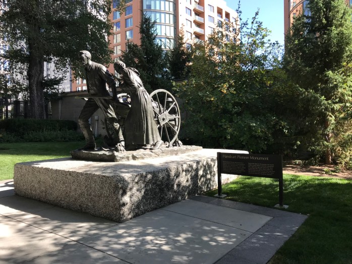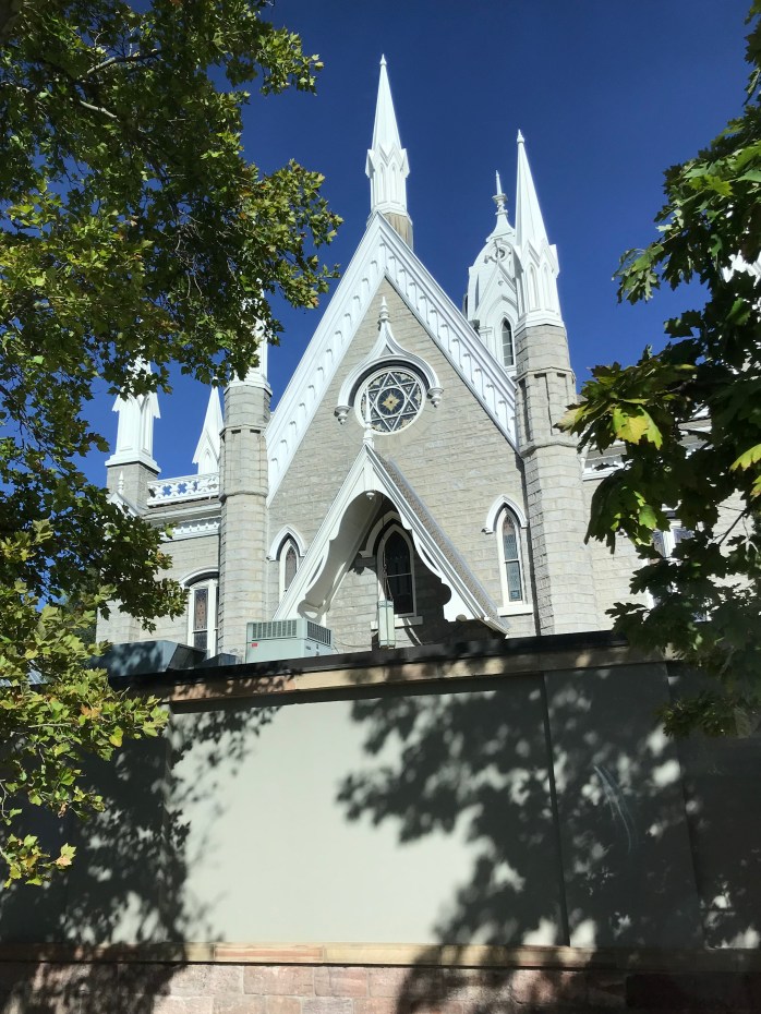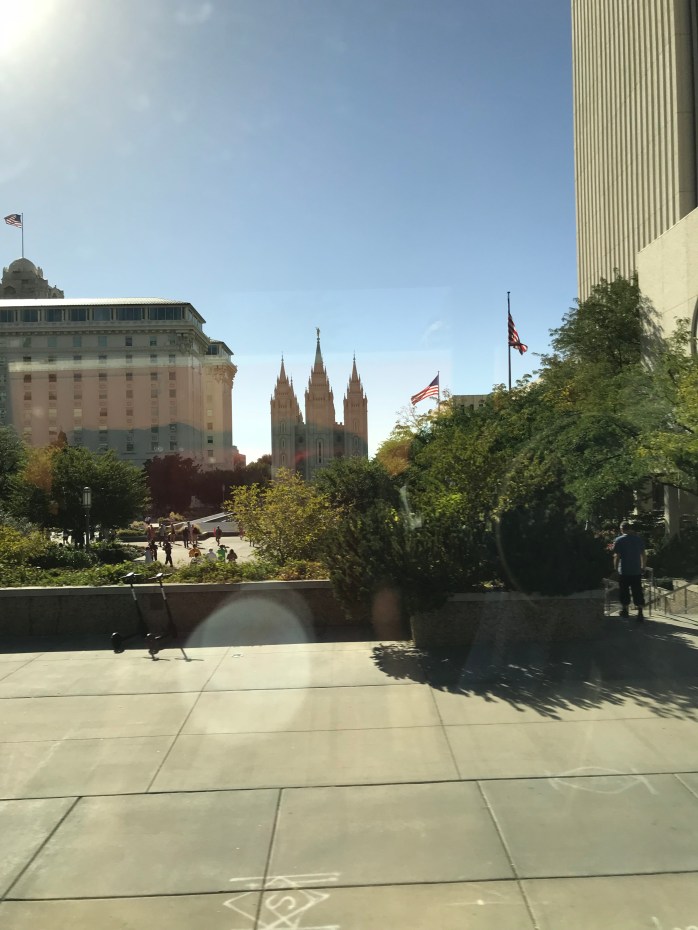 And, finally, we got to Salt Lake City…..where we stayed at a hotel right in the middle of downtown – a couple blocks from Temple Square and the Mormon Tabernacle! We were let out to tour Temple Square and it was fascinating! Two lovely young missionaries led a guided tour through two of the buildings and the courtyard. We toured the Tabernacle and the Assembly Hall – we could not tour the Temple, because only those Mormon who follow the strictest of the church’s covenants and are declared “clean inside and out” may enter – temples are considered THE House of God and no unclean thing may enter – they are not used for regular Sunday worship – only sacred rituals, such as weddings, etc. Sunday services are held in Meeting Houses – a more informal house of worship. So, the Temple was off limits to us. We also toured the beautiful gardens in the courtyard.