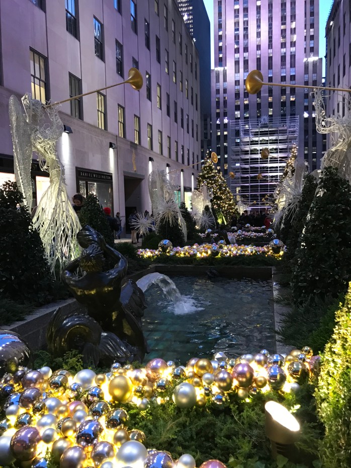 On the walk between Rockefeller Center and St. Patrick’s Cathedral, there was a long pool with lighted angels all along on either side!