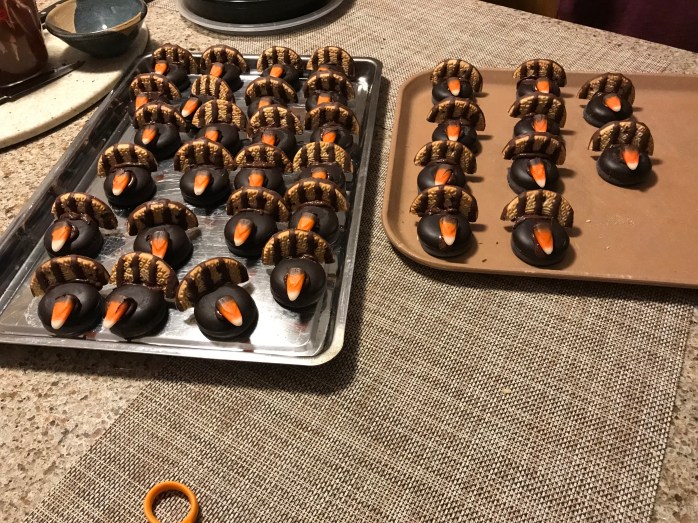 The night before Thanksgiving, Cathy and I were charged with making “turkeys”!