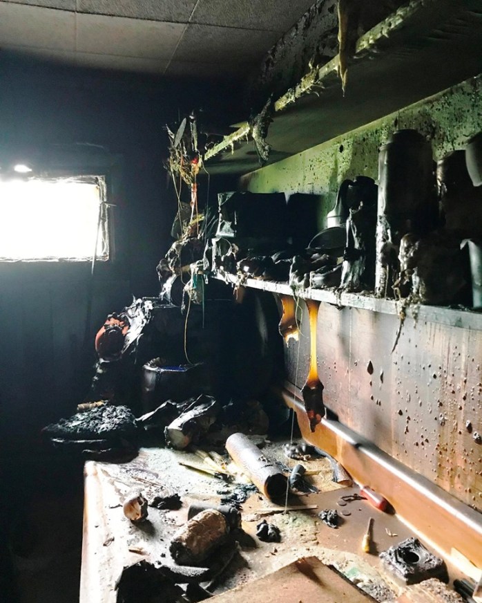 My brother’s home, which used to be my mother’s home and our childhood home, burned a few weeks ago – a total loss! It has been a very emotional and overwhelming time for all of us – especially my brother and sister-in-law! This is the counter in the laundry room that Mom and I spent many, many hours sitting and painting ceramics and laughing and talking over the years…..very sad to see it like this!
