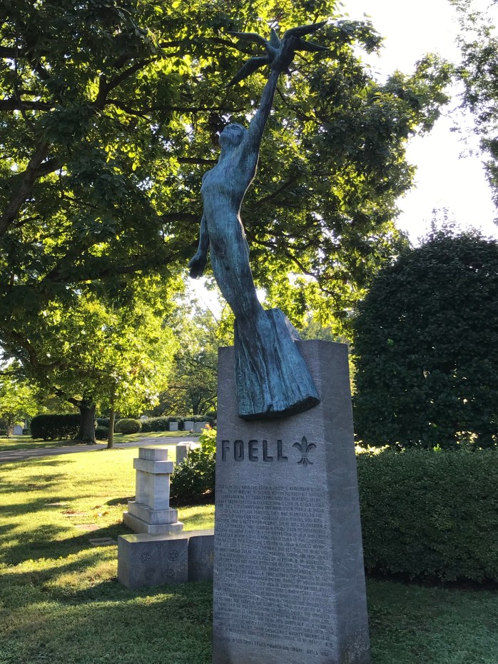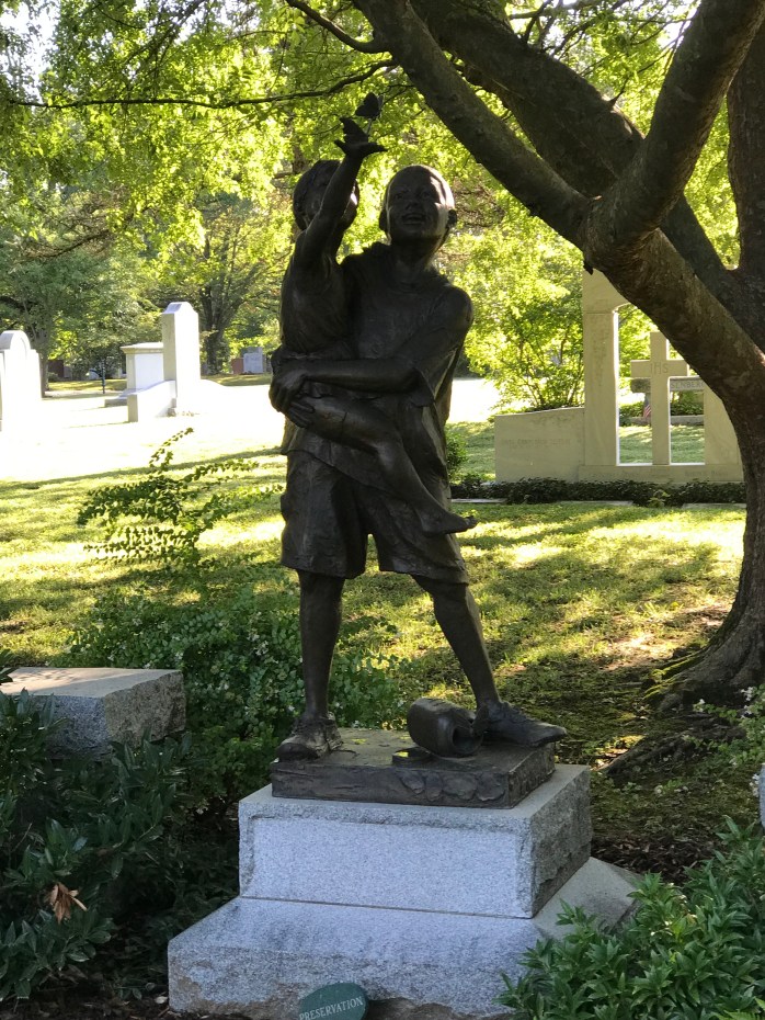 Cave Hill Cemetery is located in downtown Louisville. It is a gorgeous garden styled cemetery established in the mid-1800’s. It has rolling hills, lakes, streams, abundance of nature, and lots of stunning statues and memorials. It also is the home of Louisville’s National Cemetery for veterans.
