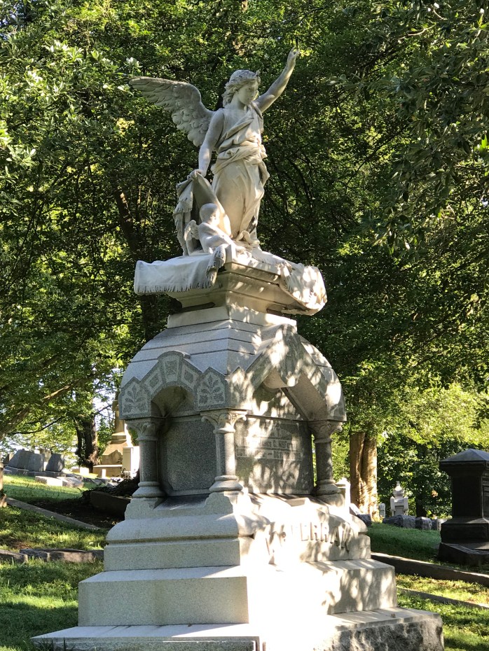In the Victorian period, personal wealth increased, as did family aggrandizement. The garden cemetery became the repository of symbols of success in the form of true monumental art. The landscape gardeners embellished the natural setting with exotic trees and shrubs while the marble sculptors and granite fabricators erected elaborate memorials to individuals and families. Cave Hill has been blessed by a succession of competent and innovative landscape gardeners, and Louisville has been a regional center for monument makers. The result is a rural, garden-style cemetery which has always been considered a model to emulate.”