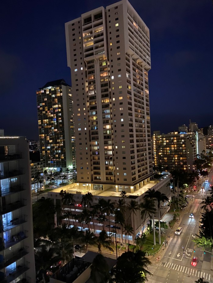 View from my Honolulu hotel balcony – Ohana Malia, Waikiki