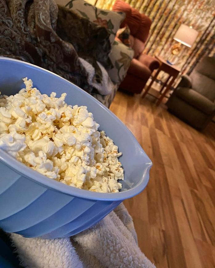 SHARING THE COUCH, BLANKETS, AND POPCORN ON A CHILLY EVENING