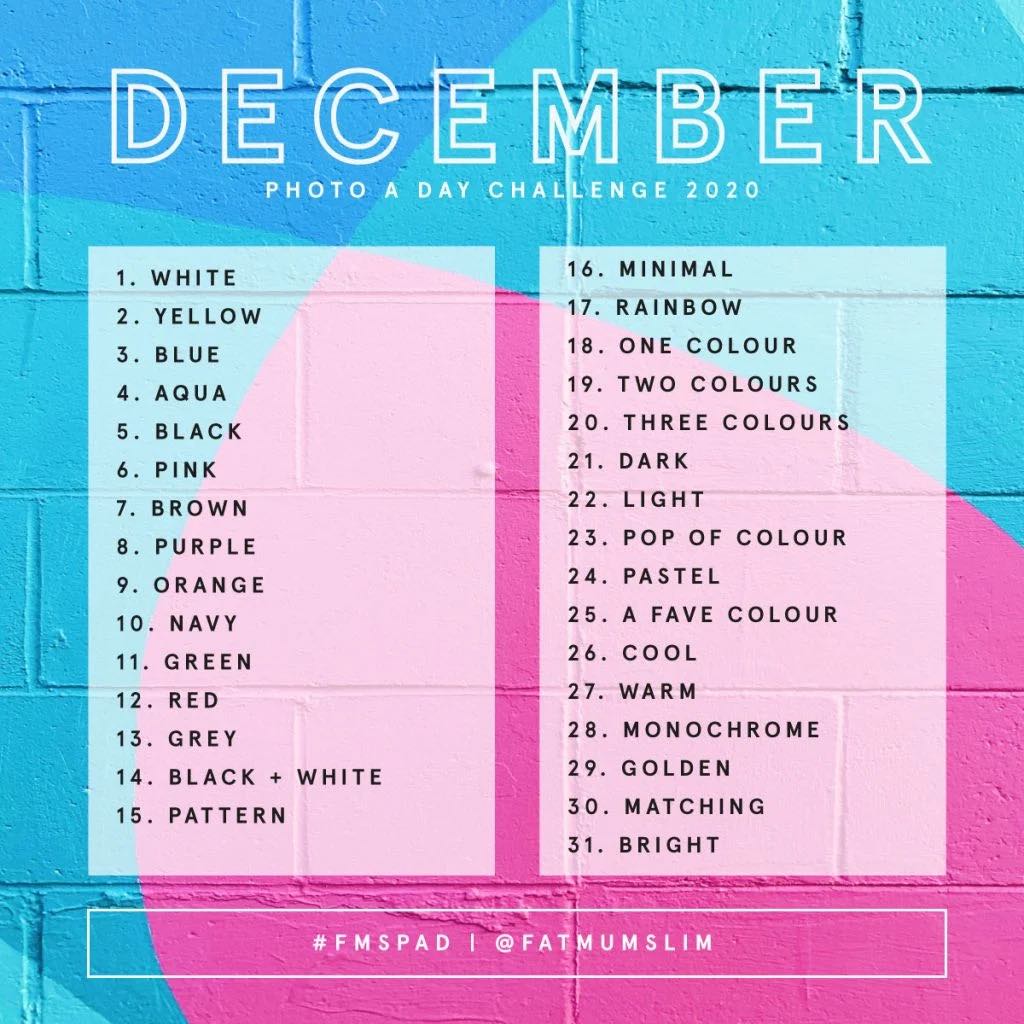 And……here is December’s regular Daily Photo Challenge List — it will be a Rainbow Month…..and the Advent list will continue into December, as well: