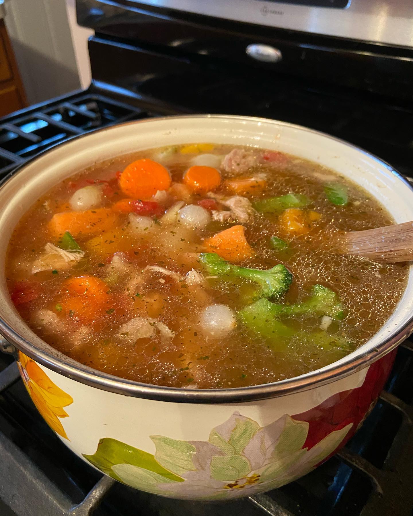 LOL – I probably look like that eating an eclair, too! I love “everything but the kitchen sink” soups – so comforting! Thanks for visiting – hope you’ll visit often!