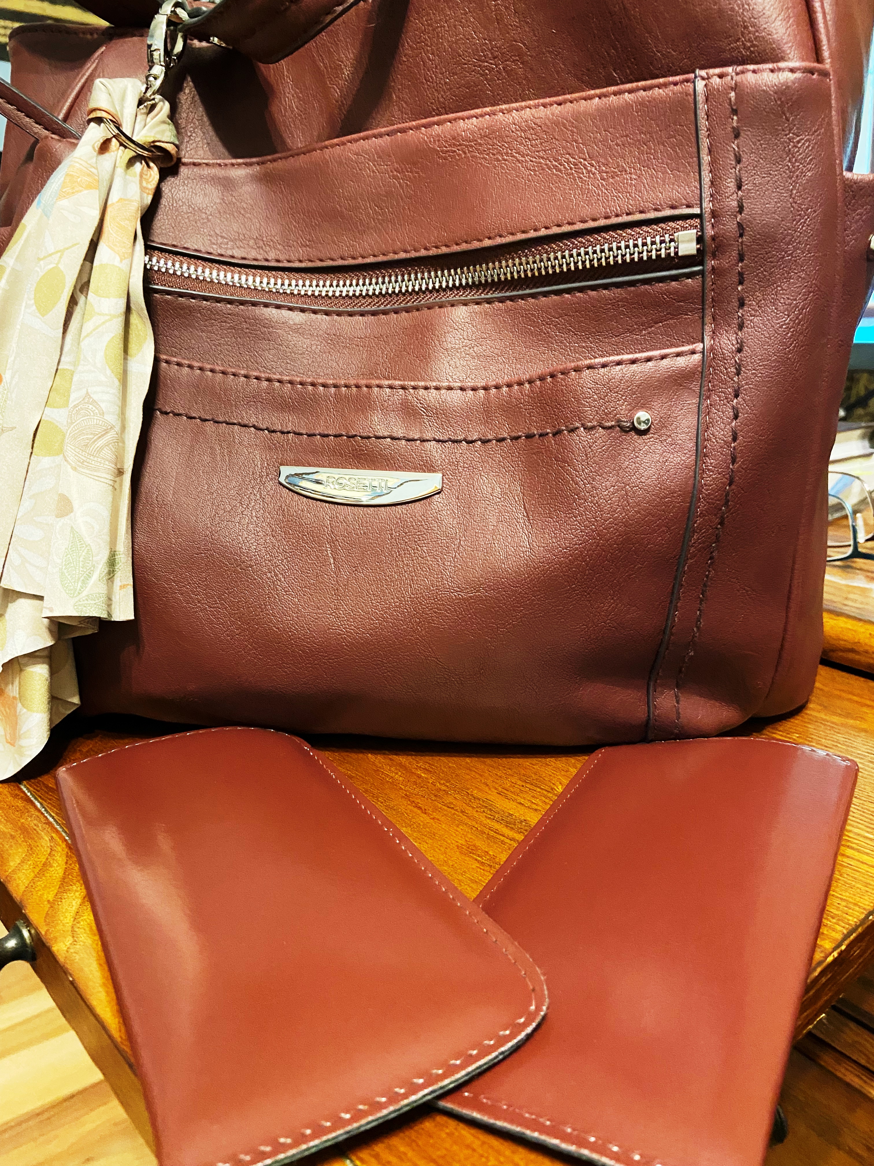 And, another good thing…..the cases they gave me for the glasses match the new fall/winter purse I bought myself the other day perfectly…..the lighting for this photo makes them look a little different, but they are actually almost an exact match in color!!!