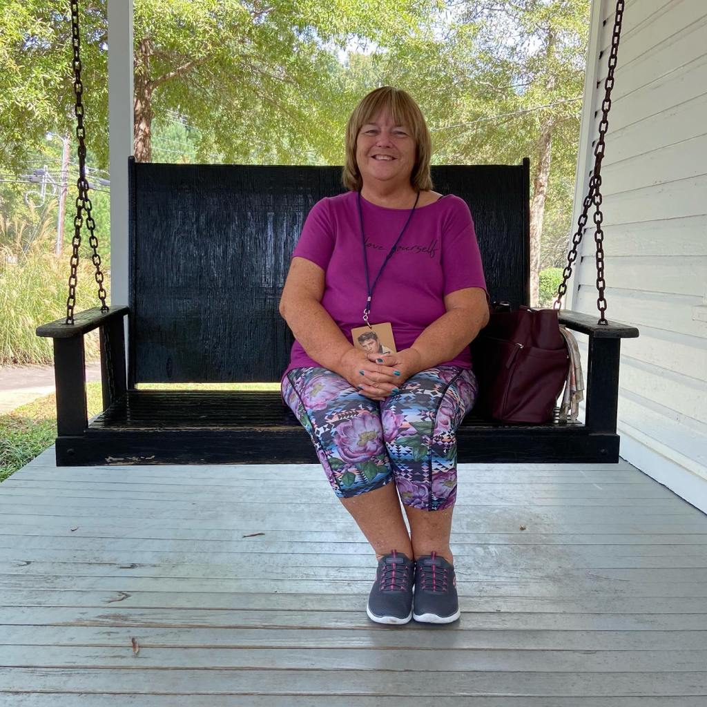 ……sitting on the porch swing of the home Elvis Presley was born in!