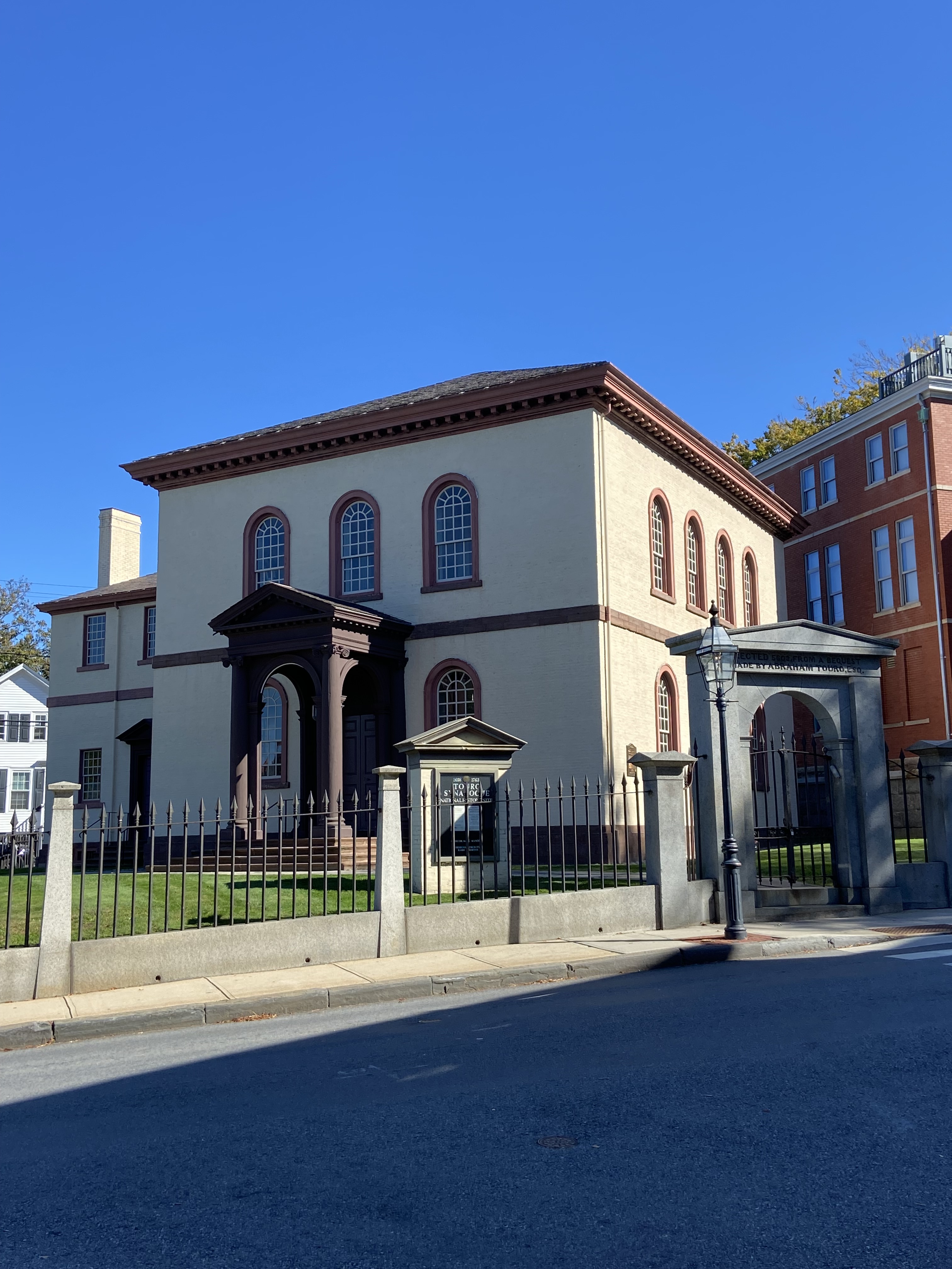 And the final building in the area – across the street from the Synagogue is the Levi Gale House – Jewish Community Center. This structure was moved in late 1925 from its original location for use as a community center for the Touro Synagogue.
