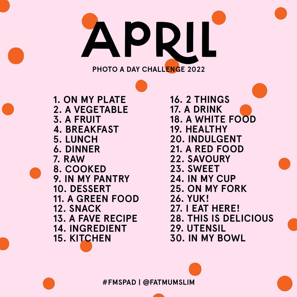 So – that’s March…..and here are the topics for April – it’s “Food” month!!!